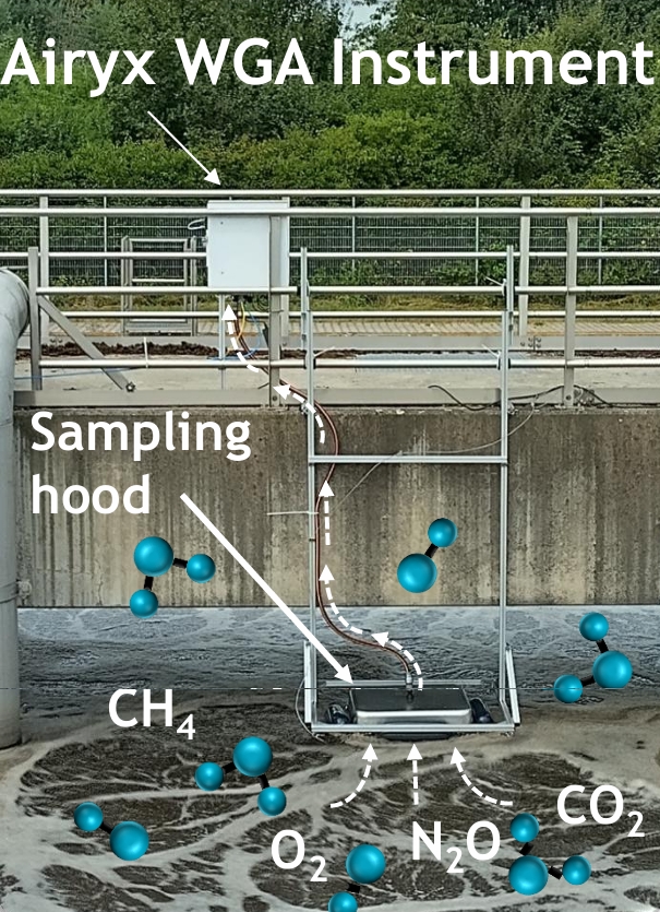 The Airyx WGA020 provides long-term stable, real-time measurements of relevant greenhouse gas emissions from wastewater treatment plants along with minimal maintenance and calibration effort. Gases are sampled via a felxible deployble floating hoods. The WGA does not need any gas bottles for operation and offers increased precision by background-corrected emission quantification, internal zero-drift reduction and correction for cross interferences (CO2, water vapour) by cutting-edge Airyx technology (patent pending).