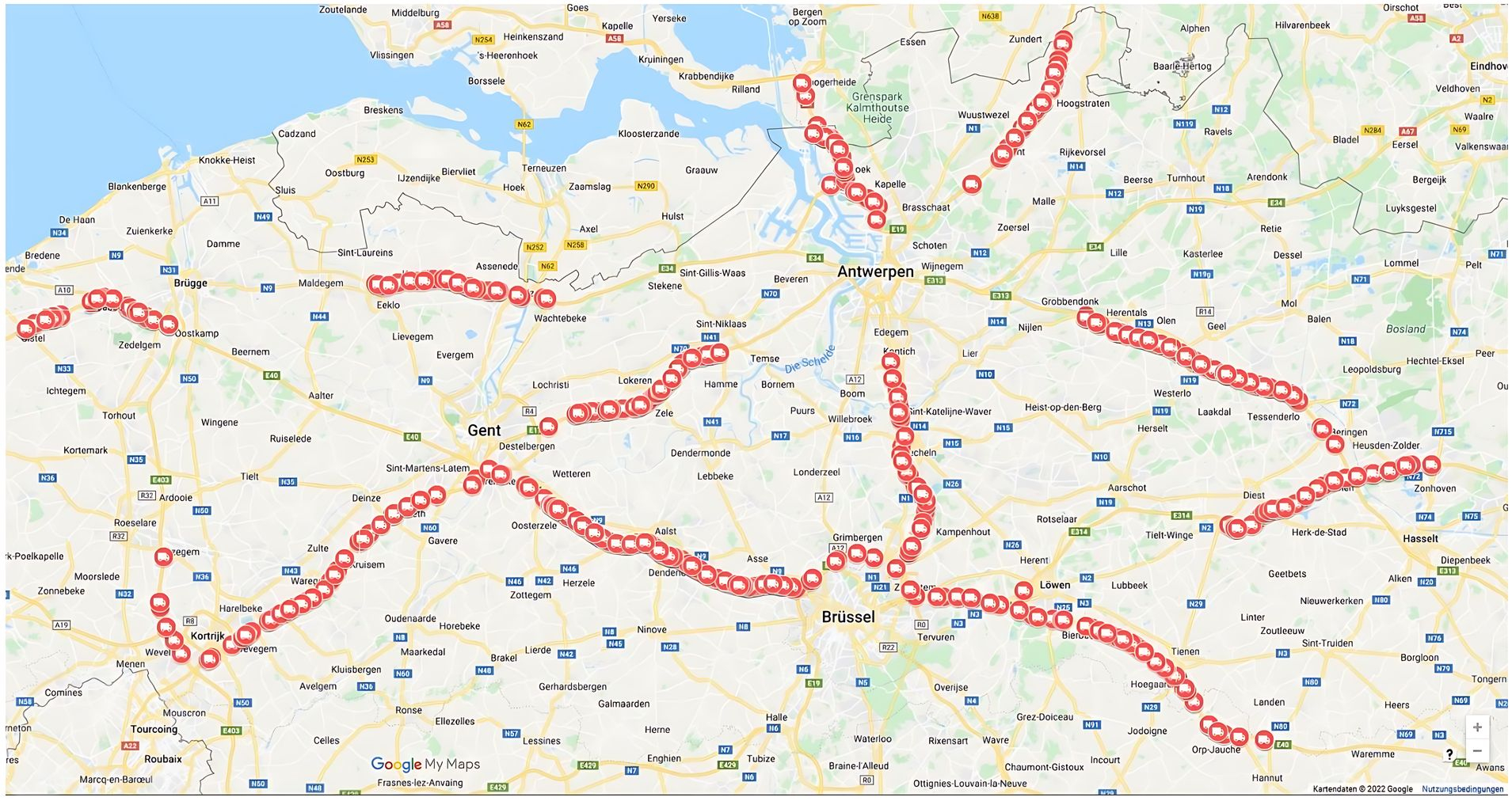 This report summarises the results of a project, applying the Airyx plume chasing measurement system, for detection of high emitter, heavy duty vehicles (HDV) in Flanders (Belgium) 23.11. – 08.12.2021 and the following inspection of the selected HDVs. The project was carried out as a collaboration between the Flanders environmental Agency, Vlabel Controle and Airyx. The study demonstrates that the emission inspection with plume chasing is well suited to efficiently identify individual defective and manipulated HDVs for further inspection.